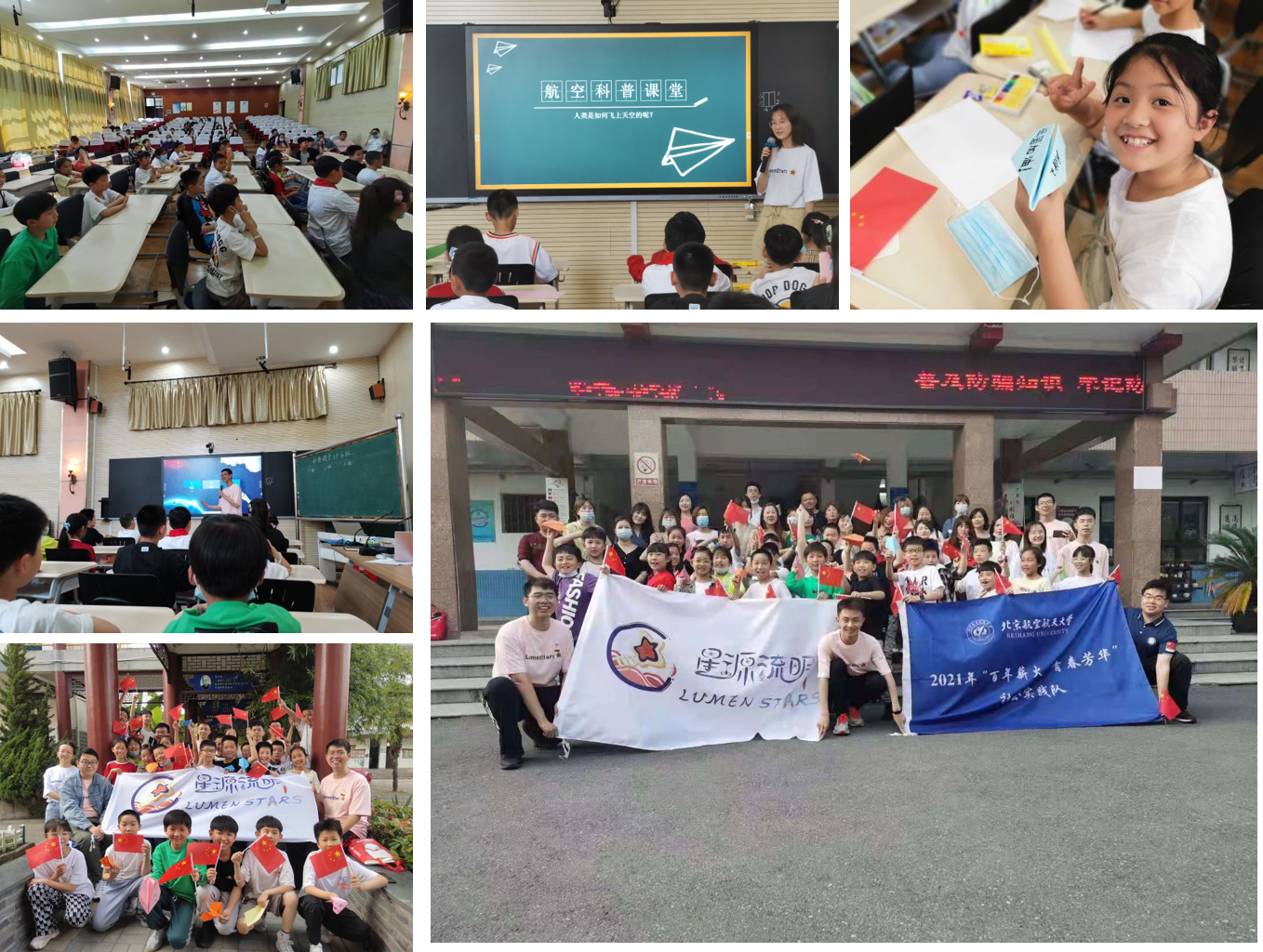 排练之余,实践队成员前往南浔实验小学开展科普课堂活动,课堂上实践队员对屠守锷先生的生平进行了细致的介绍,生动讲述了屠老空天报国的璀璨人生;并就航空知识展开科普,从鸟类和飞机的对比引入,通过形象的实验解释流速和流体压强,进而生动地解释了竹蜻蜓、飞机的飞行原理。为了让同学们有更深的体会,实践队成员手把手教小朋友们折起了“能飞更远”的纸飞机,同学们在欢声笑语中学习航空航天知识,播下空天报国的种子。