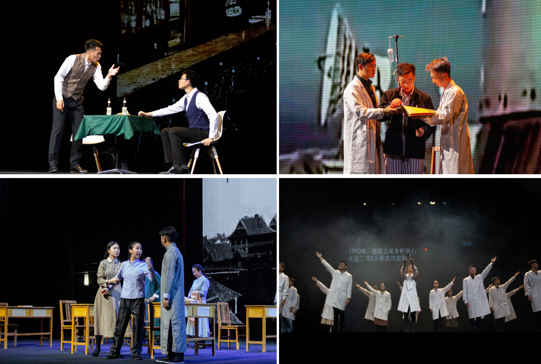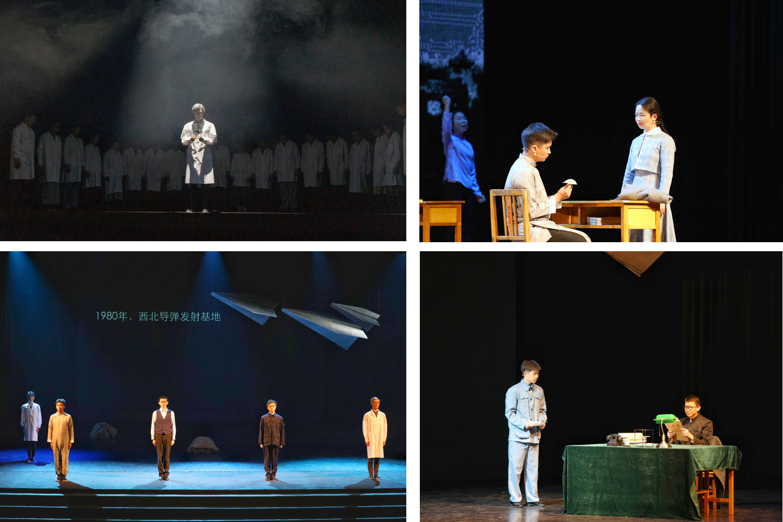 伴随着灯光暗下,话剧正式拉开帷幕。从年轻屠守锷目睹挚友高飞惨死,此后立志读书、航空报国,到屠守锷先生毅然放弃在美国优厚的物质条件和优质的科研资源,学成归国,再到解放后的艰苦奋斗,用热忱与钻研助力导弹升空、长征问天,屠守锷老先生以一腔热血,完成了在童年好友离世时的誓言,也为中国的空天事业赢得了世界的尊重。当大灯亮起,台下掌声雷动。屠老先生的故事感人至深,无论是少年睹国殇、立下踌躇志、赤子怀丹心、毅然豪情归国的赤胆忠心,还是屠老元老存风范、倾心助力建校、深情系北航、呕心沥血育人的奉献精神,屠老守正终出新、献身为祖国的光辉人生便是空天报国最鲜活的写照。演出结束后观众的掌声经久不息。