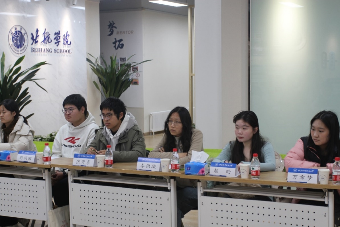 刘虎从回顾自身大学学习经历谈起,分享了学习心得和体会,启发同学们畅所欲言。同学们积极分享了来到北航三个月以来的学习经历和感受,对学院工作提出了建议,现场氛围轻松愉悦,气氛热烈。