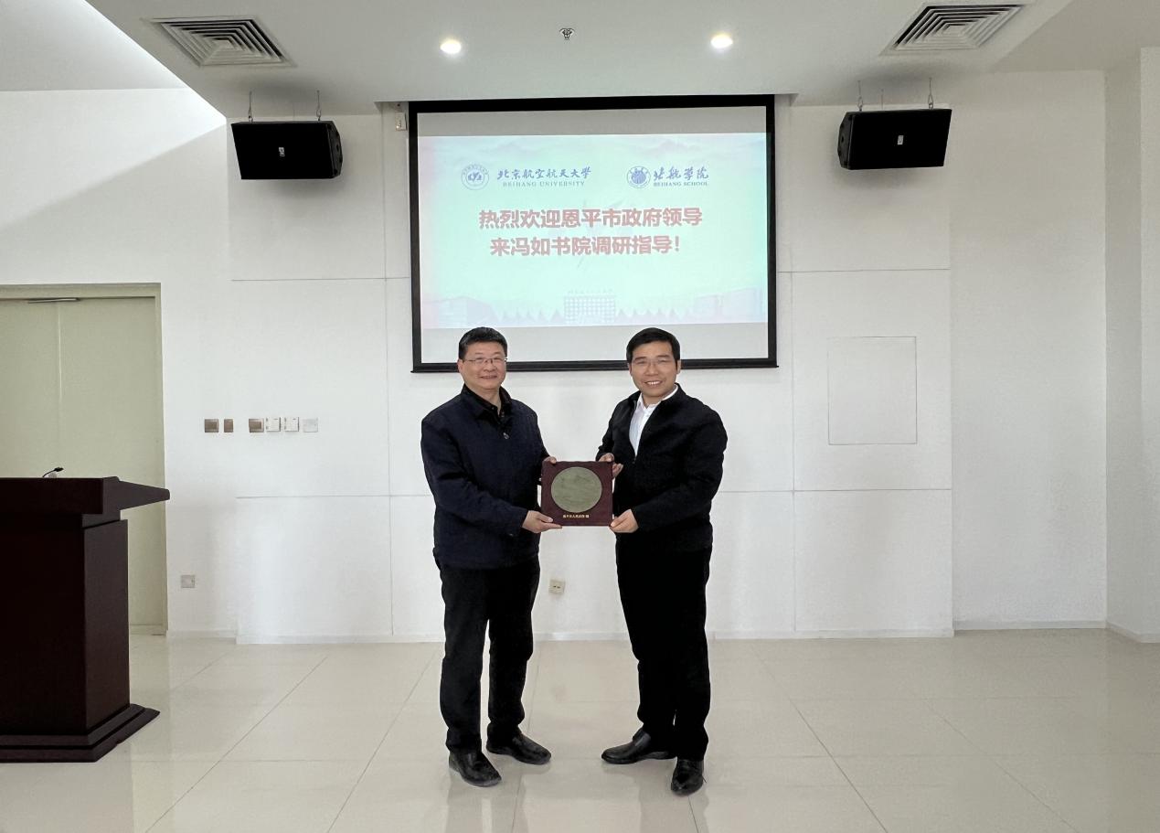 赖惠镇市长对冯如书院长期以来与恩平市在文化交流、人才培养等方面开展的积极工作表示感谢,并就专项奖学金设立、大学生社会实践、产业就业指导、科技成果转化等多方面提出合作建议,希望双方通过合作充分挖掘高校和地方各自的资源优势,共同擦亮“冯如”文化品牌,助力青少年空天教育科普,为建设新时代航空强国贡献力量。