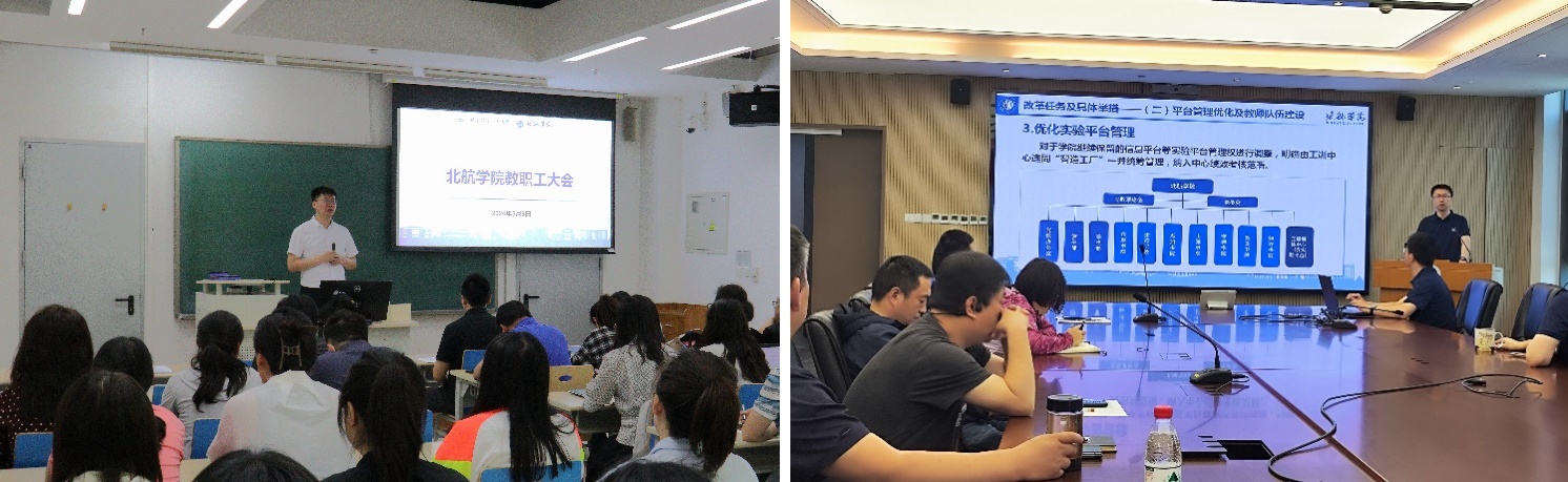 4月22日和23日,学院院长刘虎和党委书记宋晓东分别主持召开了学院基层教学组织建设研讨会和学院人才培养顶层设计研讨会。基层教学组织建设研讨会对学院基础教学十个核心课程群及工程实践创新基层教学组织建设思路进行研讨,梳理了学院教学工作团队情况,梳理形成了金沙集团1862cc橙色基层教学组织建设方案及工作机制;学院人才培养顶层设计研讨会结合学院综合改革相关工作,对体制机制、平台管理优化及教师队伍建设、人才培养、科技创新、国际交流合作、资源配置、考核评价及绩效管理机制改革等内容进行研讨,进一步明确了工作目标和工作举措。