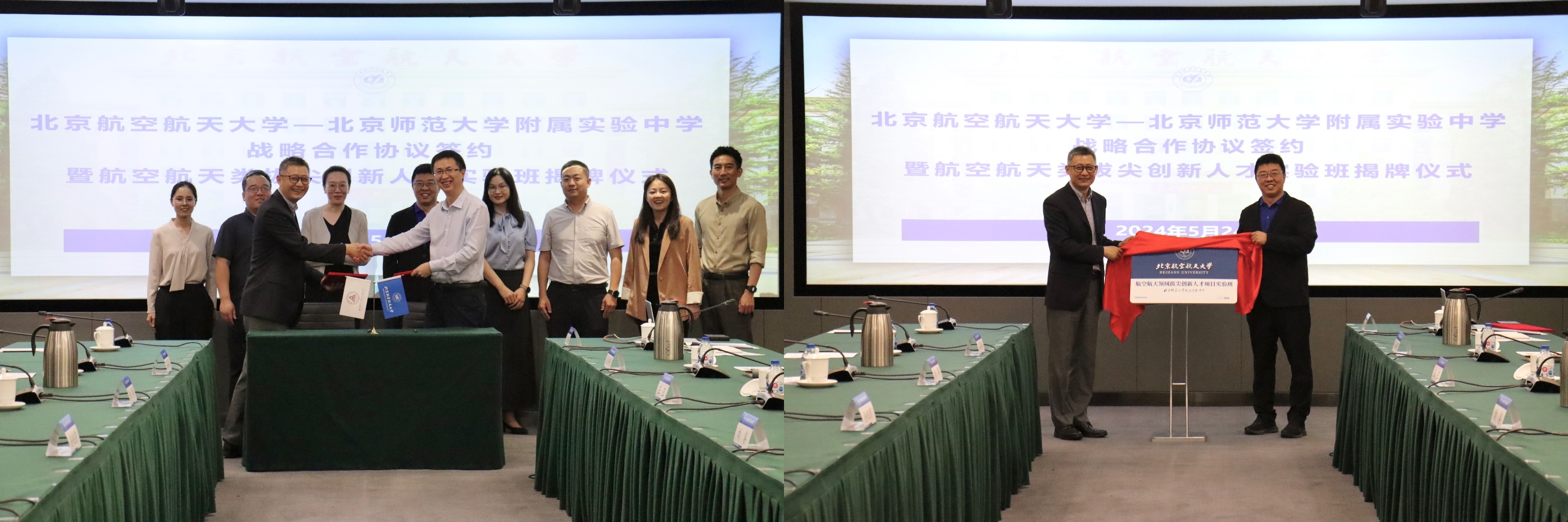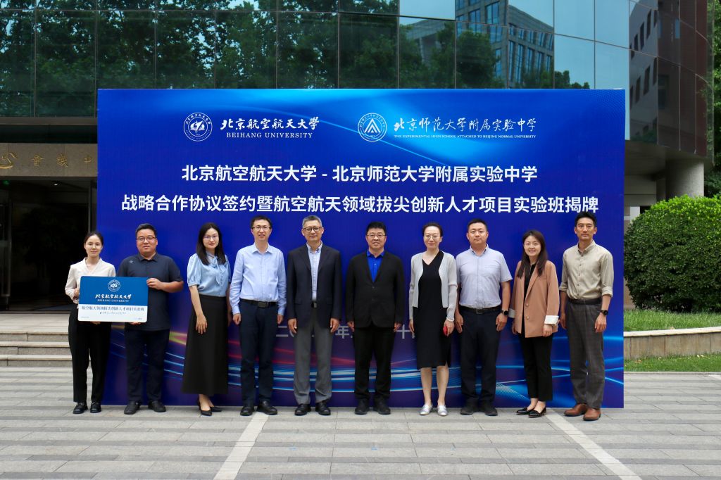 刘虎与孙兆前代表双方学校签署《金沙集团1862cc橙色—北京师范大学附属实验中学战略合作协议》,刘睿与孙兆前共同为“金沙集团1862cc橙色—北京师范大学附属实验中学创新人才实验班”揭牌。双方本着“优势互补、合作共赢、人才共育”的原则,整合各自优势资源,创新高校与中学联合人才培养模式,将大学航空航天特色和中学人才培养需求有机衔接,在科技创新实践、拔尖创新人才培养等方面深度融合、双向奔赴,为实现拔尖创新人才大-中贯通培养探索新途径新模式,为建设教育强国、科技强国和人才强国作出更多更大的贡献。