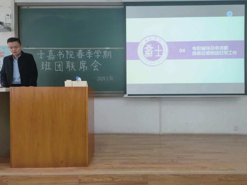 (通讯员:门雪洁)为加强书院各班级之间的交流学习,更有效地推进本学期系列活动开展,3月31日下午13时,士嘉书院在沙河校区J3-101召开春季学期第一次班团干部联席会。士嘉书院专职辅导员申泽鹏,书院分团委副书记邢艺花,学生会体育部部长段熙锴,各大小班班长、团支书及体育委员参加此次会议。