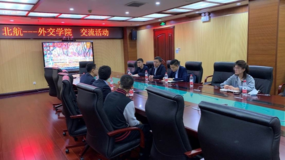 首先,双方在外交学院会议室开展学习交流座谈会。会上,外交学系党总支书记郭延凯对外交学院的历史沿革、学科设置、系内人员组织架构、学科专业特点做了简要的介绍。外交学系辅导员杨阳分享了系内的特色育人活动,从培养德智体美劳全面发展的中国优秀外交官做出努力。
