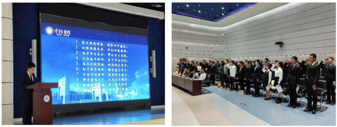 接着,守锷书院半脱产辅导员方阳宣读了守锷书院学生干部倡议书。在分团委组织部部长何忧的带领下,全体学生干部起立做庄严宣誓。