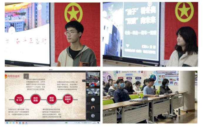 在冬奥·百年环节,守锷书院217611小班于子然同学结合建团百年,将青年实践与冬奥志愿联系起来,阐述当代青年的时代定位。守锷书院217624小班的周驭天同学以《弘扬守锷精神,探路共同富裕》为题,重点讲述在建团百年即将到来之际,守锷书院的同学们通过回访南浔、积极弘扬守锷精神。