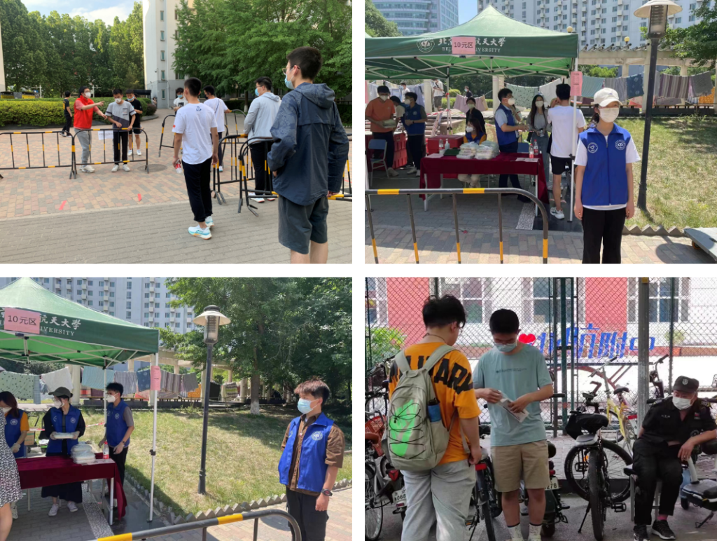 为了保证学校闭环管理期间大运村餐点秩序,217324-217328小班组织学生在用餐时段担任秩序维护志愿者,开展“校园用餐卫士”志愿实践活动。学生以小班为单位分时段维持早、中、晚三餐购买秩序,提醒购买餐点的同学戴上口罩、保持距离,用自己的力量保障大运村餐点有序运营。