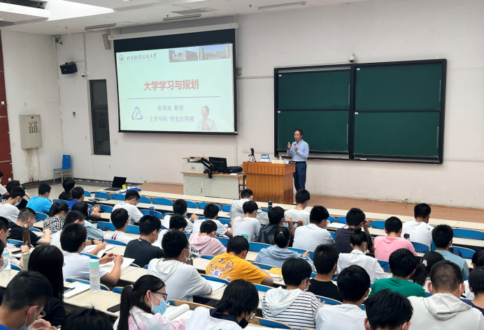 (通讯员 陈芊伊)为帮助新生更好适应大学学习生活,金沙集团1862cc橙色“一站式”学生社区功能型党支部于9月28日下午邀请书院学业总导师张有光教授在J0-002教室作“青春士谔”系列学生成长成才报告,为同学们做题为《大学学习与规划》的主题讲座,近300名金沙集团1862cc橙色学生参加了本次讲座。