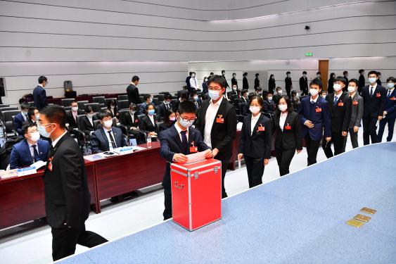 在主席团竞选环节。大会表决通过了《传源书院第一届学生会主席团竞选办法》、大会监票人、计票人名单。梁坤、俞文瀚、程鹏、郑玉洁4位主席团候选人依次上台进行竞选演说,他们从学生的切身需求出发,结合自身经历多维度、多层次阐释了对于书院学生会工作的理解和工作计划,充分展示出候选人为同学服务的热情和建设书院的主人翁精神。在投票环节,整个投票过程有条不紊、公平公正公开,大会无记名差额投票产生了传源书院第一届学生会主席团,梁坤、俞文瀚、程鹏三位同学当选。