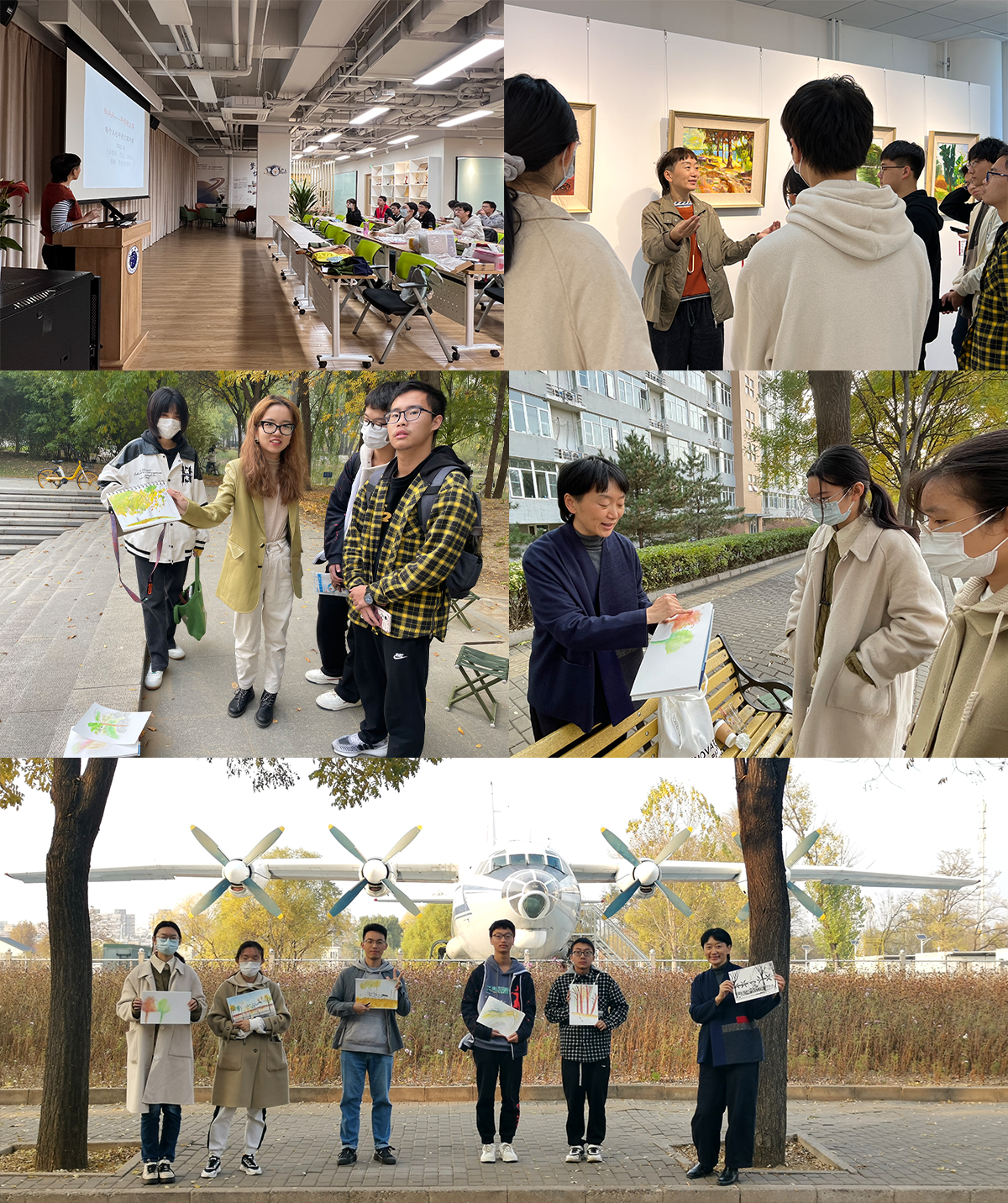 “手绘秋之美”美育兴趣课堂由新媒体艺术与设计学院副教授庄维嘉主讲,包含室内理论和室外实践两部分,带领同学们理解美、欣赏美、创作美。理论环节讲述了绘画的构图要素与色彩搭配,结合书院提供的水彩、彩铅等绘画工具讲解其特性和使用方法。实践环节组织学生参观“执着与美”作品展,带领学生踏访沙河校区,绘制心中最美的风景。指导教师对每一位同学的手绘画作进行了点评。