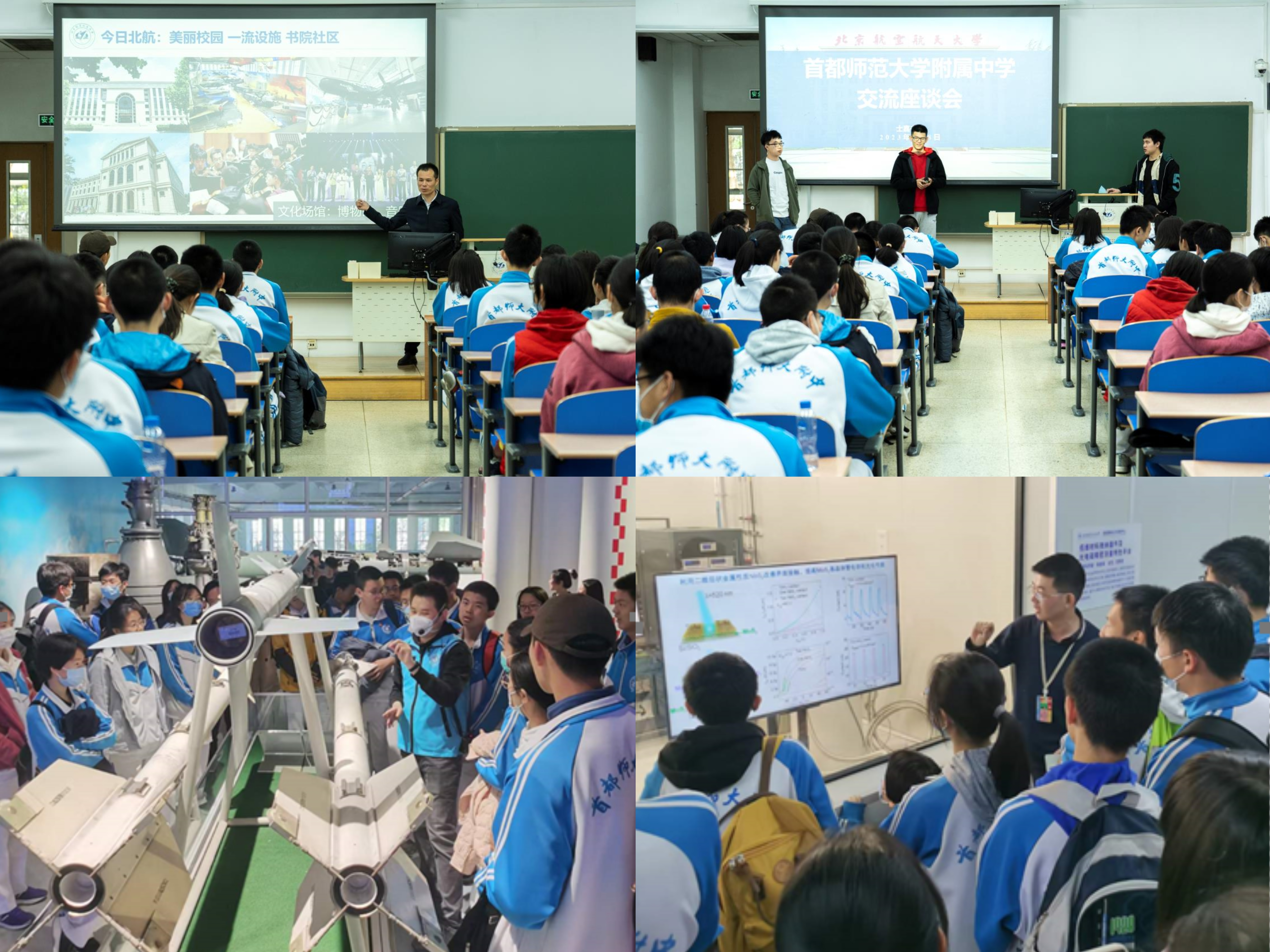 据悉,2021年,首师大附中与我校签署了北航“优质生源基地”合作协议,为高校高中协同探索拔尖创新人才全方位培养模式搭建平台。此次校园行科普活动,让中学生对北航的了解更加深入、全面,吸引更多优秀学子爱北航、报北航。