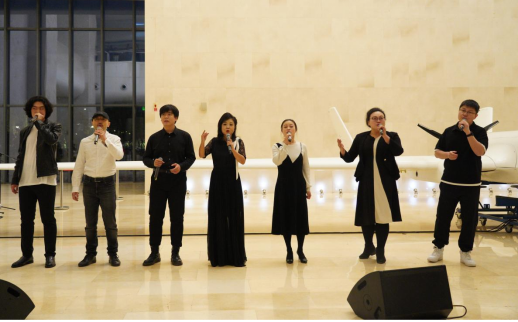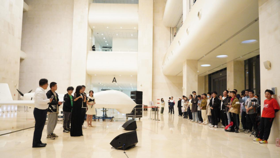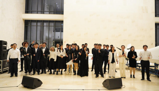 本次沙龙不仅有作品演唱还有沉浸式体验的现场教学环节。校友带领同学们现场体验了B-box声部人声模拟乐器的神奇音效;几位同学们上台体验了戏曲唱腔以及能让作品恢弘壮阔的男低音声部试唱;飞行学院学子身穿制服、帅气亮相与人声伴奏共唱《我爱祖国的蓝天》。除此之外,北航飞天合唱团高年级学生分享了在大学学习发展与艺术修养共同进步的经验,北航91级黄浩东学长也从自身成长经历出发,给大家讲述几代北航人在航空航天相关领域取得的卓越成绩以及在扎实推进中国式现代化中北航人笃定的责任与使命。本次沙龙让北航校友师生共聚一堂以歌会友,在共享艺术之美的同时也传承弘扬着北航的空天报国精神。
