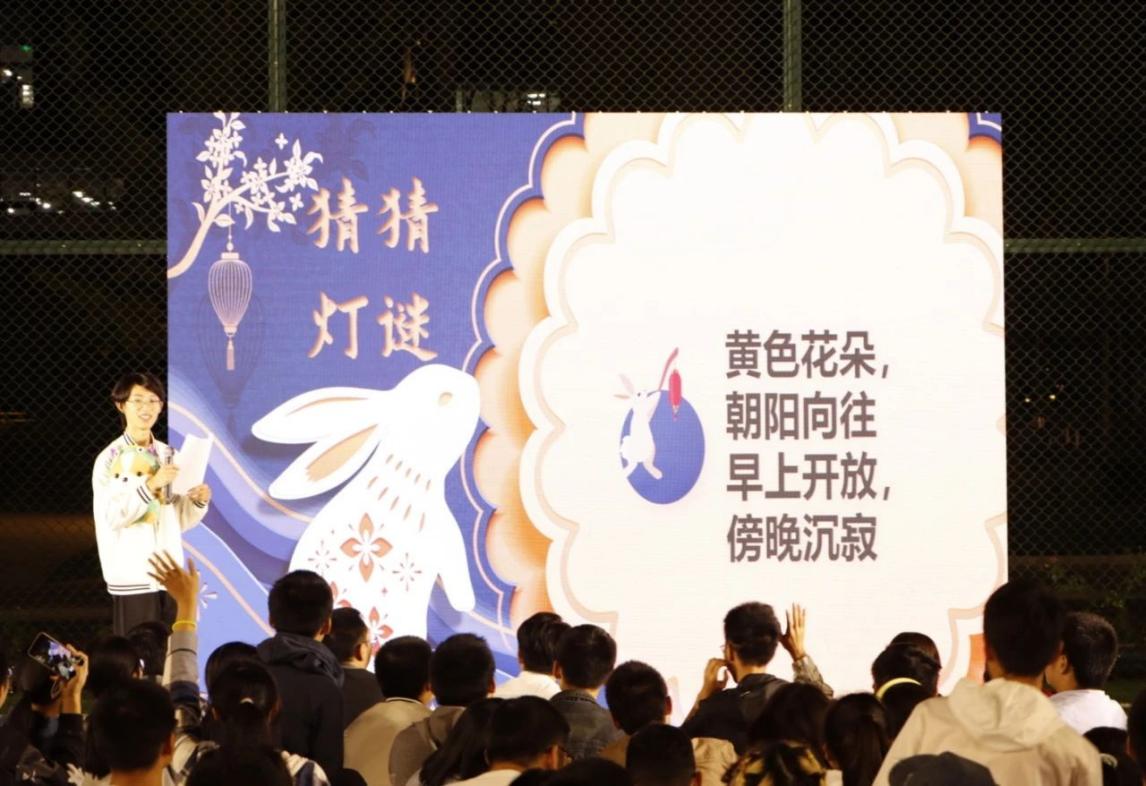 第二个环节是“猜灯谜”。本次题目设置富有创意与现代感,现场不乏才思敏捷之人,很快便猜出答案,而其他同学则是在听完答案后恍然大悟,引来场下阵阵欢笑。