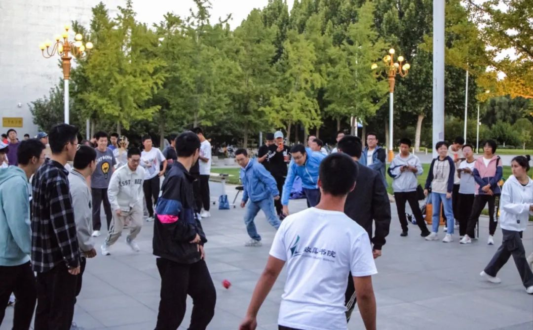 还有“逛三园”、“反重力猜拳”、“扔沙包”、“抓鸭子”等其他游戏。23级新生们跟着自己的梦拓学长学姐一起游玩,收获了团队归属感与节日的欢乐气氛。