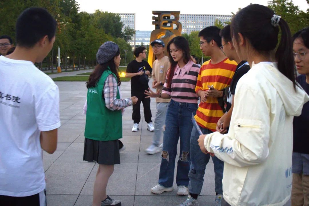 下午,同学们以梦拓小组为单位集中于大钟广场周围。主办方为大家准备了集章卡,各个小组邀请其他梦拓小组一起进行游戏,游戏结束后,获胜方可以得到更多的印章奖励。