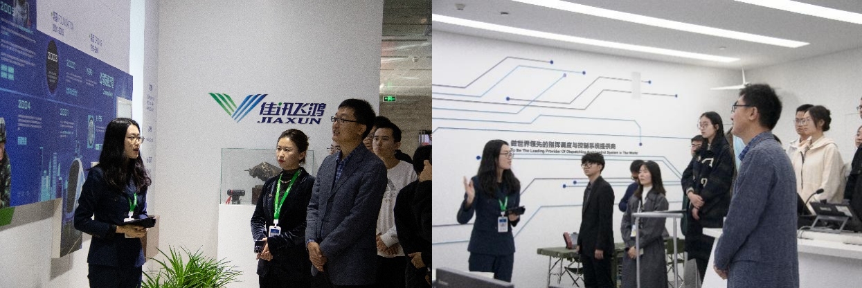 书院师生首先来到佳讯飞鸿集团展厅进行参观,了解佳讯飞鸿集团从1995年创立以来务实创业、奉献开拓直至成为行业领军的传奇历程,观摩了佳讯飞鸿集团的产品展示,感受佳讯飞鸿集团围绕“新基建”国家战略,以“大、智、移、云、物”新ICT技术为依托,助力铁路、能源、政府、民航、海关等领域智能化转型升级的行业定位与家国情怀。
