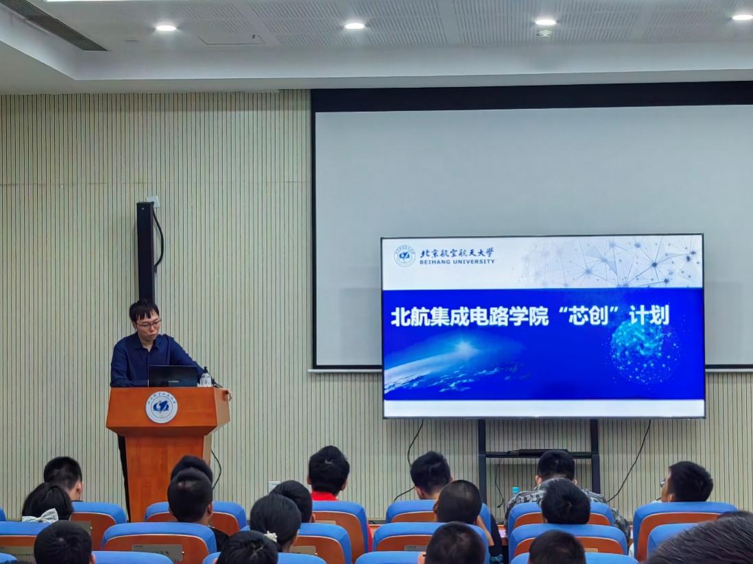 下午14:30左右,来自沙河校区和学院路校区的志愿团成员如期在北区教学区集合。之后,同学们首先前往B1报告厅聆听了郑翔宇老师关于“北航集成电路学院‘芯创’计划”的报告。报告中,郑翔宇不无自豪地向同学们介绍了集成电路学院,同时介绍了光盘、U盘、磁卡等涉及微纳技术的产品及其发展历史,让同学们对于微纳技术和集成电路有了一个初步的了解。