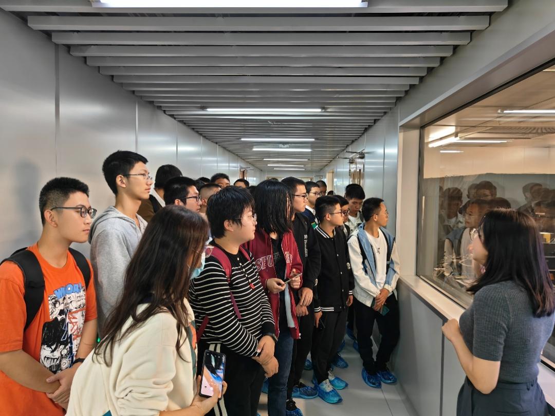 完成理论部分的学习之后,同学们分成几组,分别跟随负责的老师参观了智能微纳公共创新中心。透过洁净的玻璃橱窗,在老师们的娓娓讲述下,同学们相继参观了光学测试区、综合测试区、真空互联区、特色平台等科研区域,在实地参观中体会老师的讲解思路、感受现场氛围。在为志愿者们讲授的过程中,老师鼓励志愿者结合自己的理解努力把专业知识以通俗有趣的形式讲述给来访者。