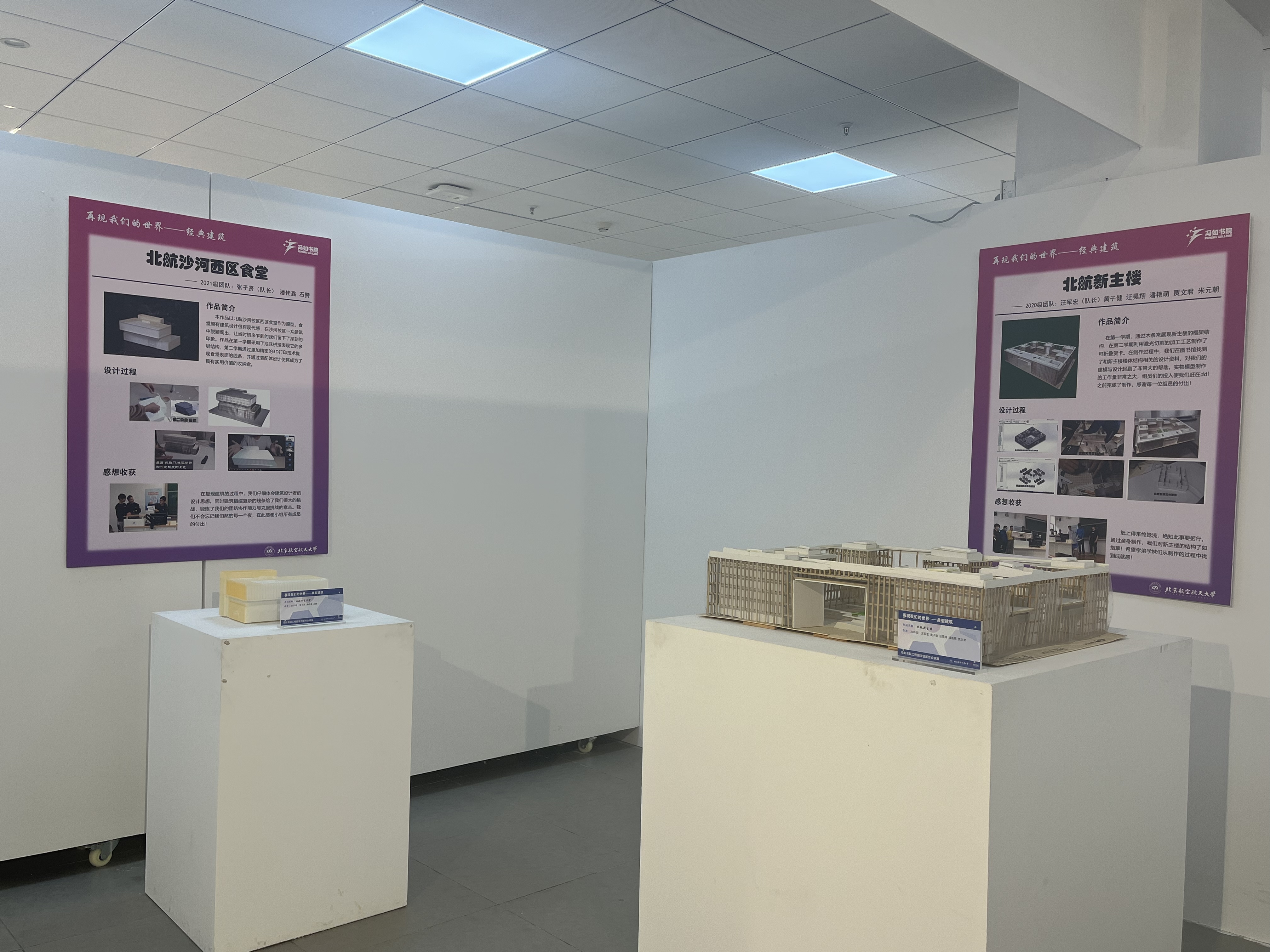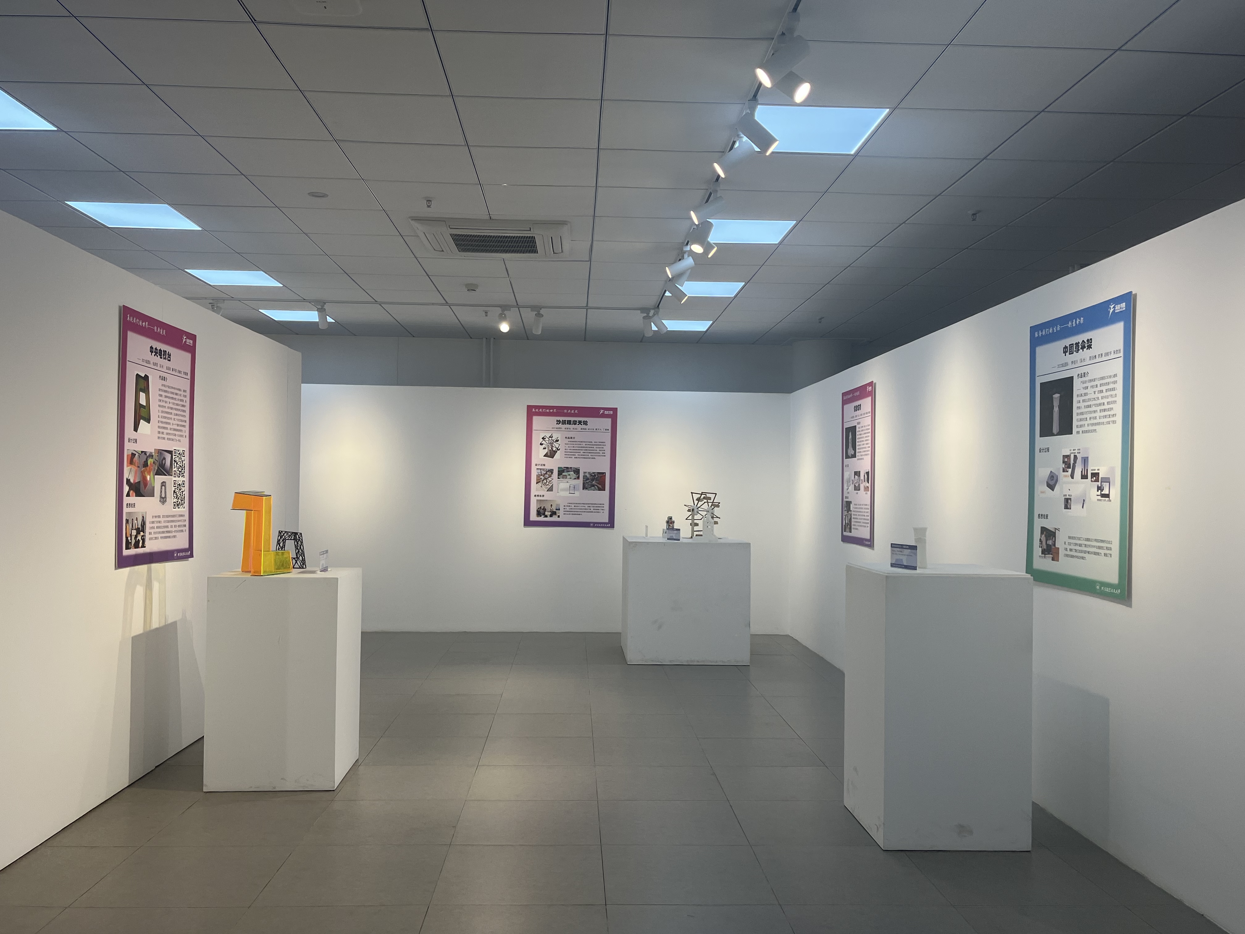 本次展览由五个篇章组成,包括“触摸祖先的礼物——先哲智慧”“再现我们的世界——经典建筑”“服务我们的生活——创意伞架”“放飞我们的未来——空天畅想”和“反思我们的弯路——实践真知”,荟聚冯如书院2020级至2022级近40件学生作品,以实物陈列和展板介绍相结合的形式进行展出。