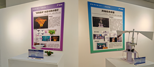 在这些各具特色的工图大作业优秀作品中,既有灵感源自中国古代建筑斗拱结构的夜灯和源自榫卯结构的木亭,也有以沙河校区新主楼和西区食堂为原型的模型作品,有航空元素的创意伞架,也有面向未来创造的火星车与着陆器模型等等,种类丰富多元。观展者可以通过展板上的图文了解设计团队的创新理念和作品模型化、产品化全过程,与设计者实现一场特别的思维交流。