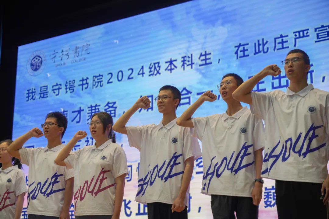 2024级守锷新生在孙铭远、司麒含同学的带领下高举右拳、庄严宣誓,“德才兼备,知行合一”的校训铭刻心中;“守正出新,空天报国”的誓言尽显胸中信念。奋进腾飞正当时,共筑巍巍中华梦!
