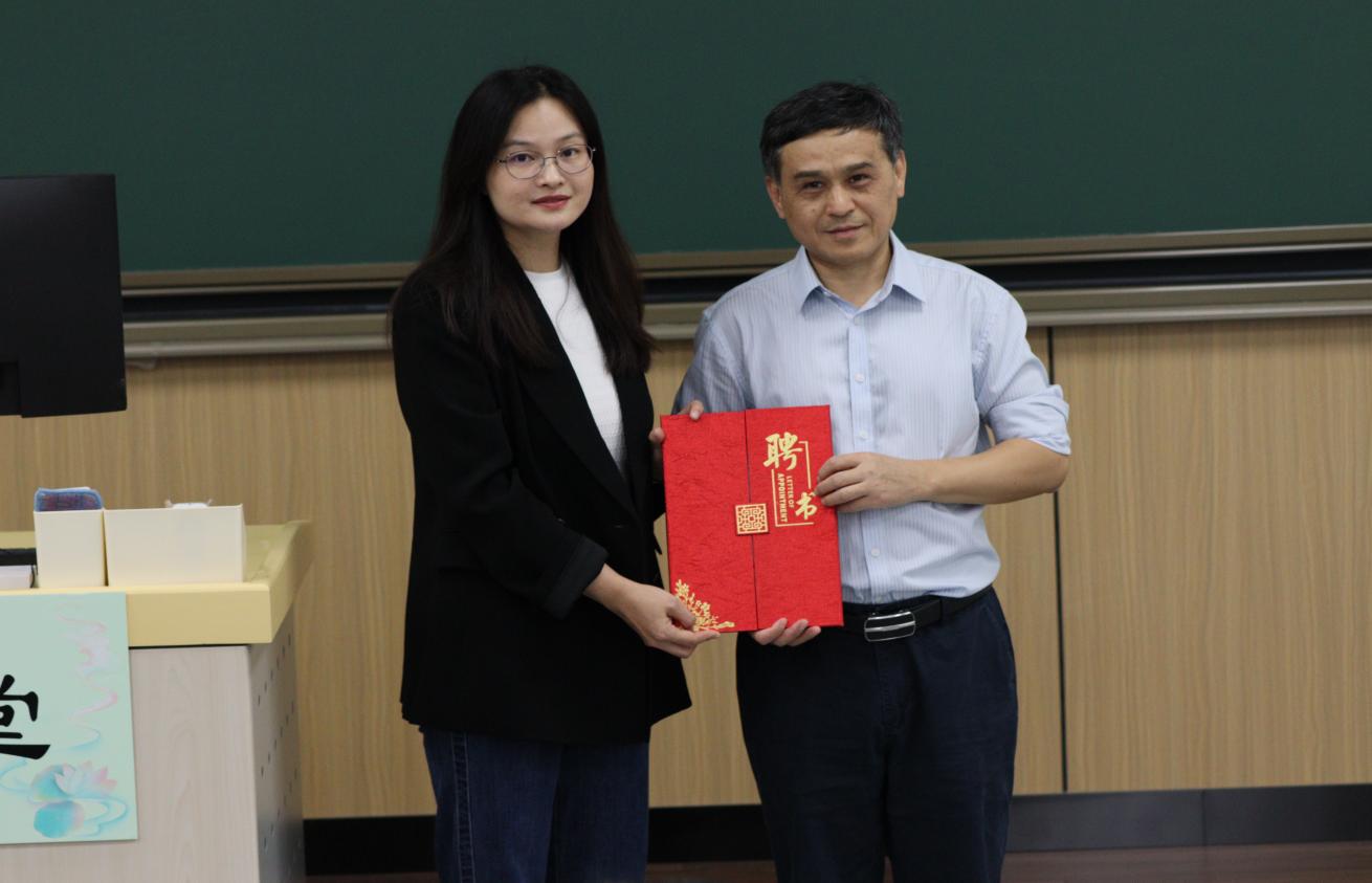 知行书院王亚老师为刘后滨老师颁发知行书院特聘导师聘书,表达了未来加强学科交流,共同促进学生全面发展的希望,并鼓励同学们要深刻学习和掌握中华文明的连续性、创新性、统一性、包容性、和平性,传承和发扬中华优秀传统文化。