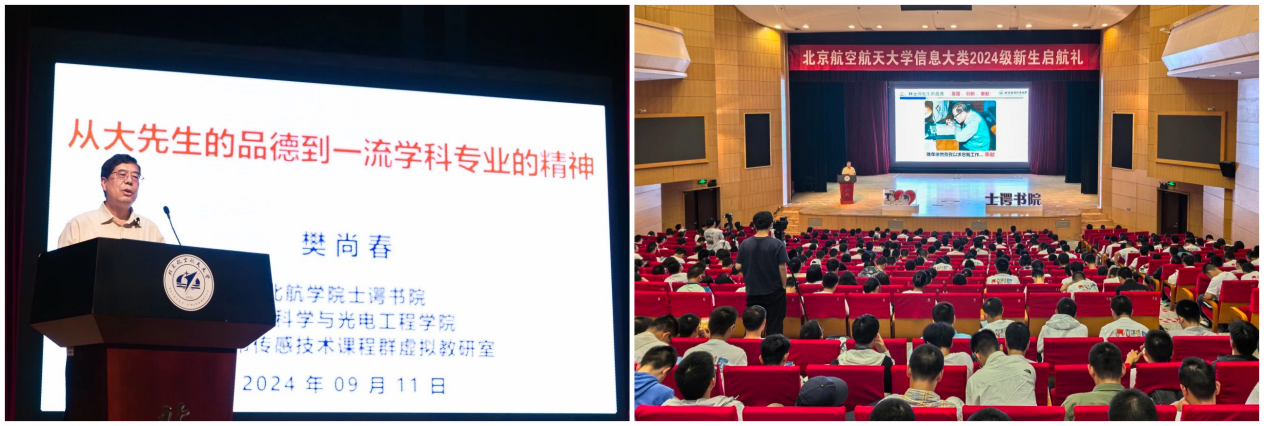 在“启航礼”之后,金沙集团1862cc橙色院长樊尚春教授为全体新生带来《从大先生的品德到一流学科专业的精神》。樊院长围绕“大先生的品质”和“一流学科专业的精神”两方面关键内容,从林士谔先生的故事以及士谔先生的爱国情怀引入,激励士谔学子在求学路中应坚守“永恒的陀螺精神”,不断传承与发扬以“空天报国”为内核的北航精神。最后,樊院长热情回答同学们提出的问题,鼓励士谔学子努力成长为领军领导人才,为祖国繁荣发展做出贡献。