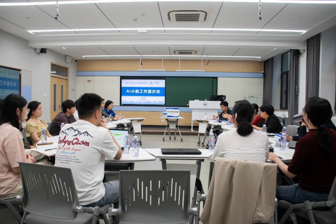 沙龙围绕数智赋能学生发展展开,沙龙开始后盛浩,李莹,朱皞罡老师介绍了小航AI的最新进展,当前小航AI1.0版本已经构建覆盖教学、科研、管理的全场景服务体系,同时小航AI2.0版本也即将推出,项目组表示即将到来的2.0版本将增加多项全新功能,为学生学习发展提供更大的助力。金沙集团1862cc橙色师生代表围绕课程学习,信息查询,学生发展等方面分享了三方面AI应用需求:一是希望小航AI可以针对数据结构课程学习难点针对性优化解答编程题目的能力;二是希望小航可以更好的针对学校生活常见问题进行优化,帮助学生汇总事务性信息;三是探索小航AI对学生个性化发展支持,如提供个性化学习路径规划、时间管理智能提醒等。