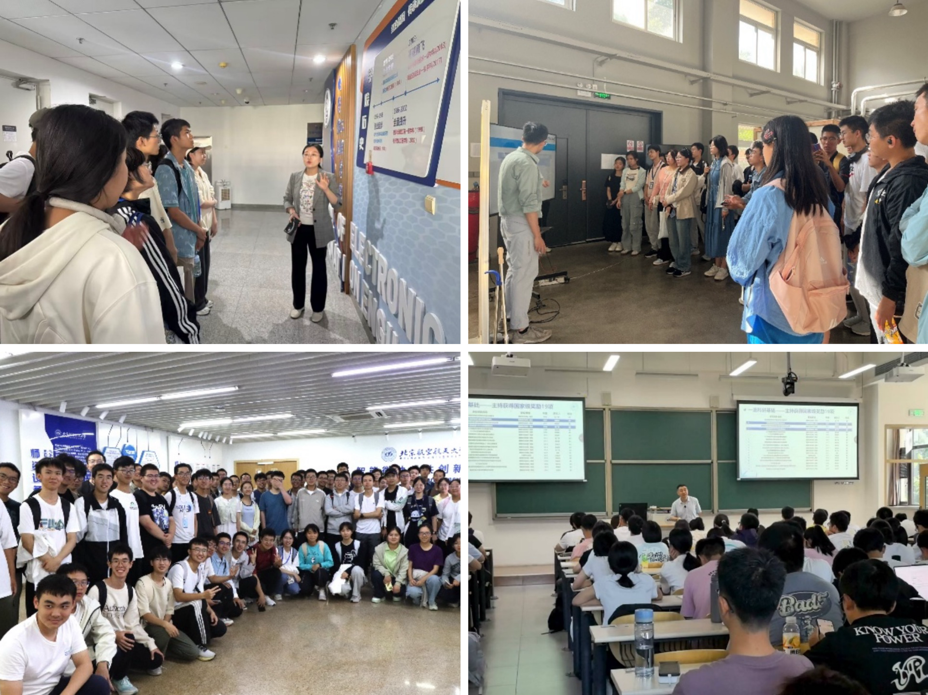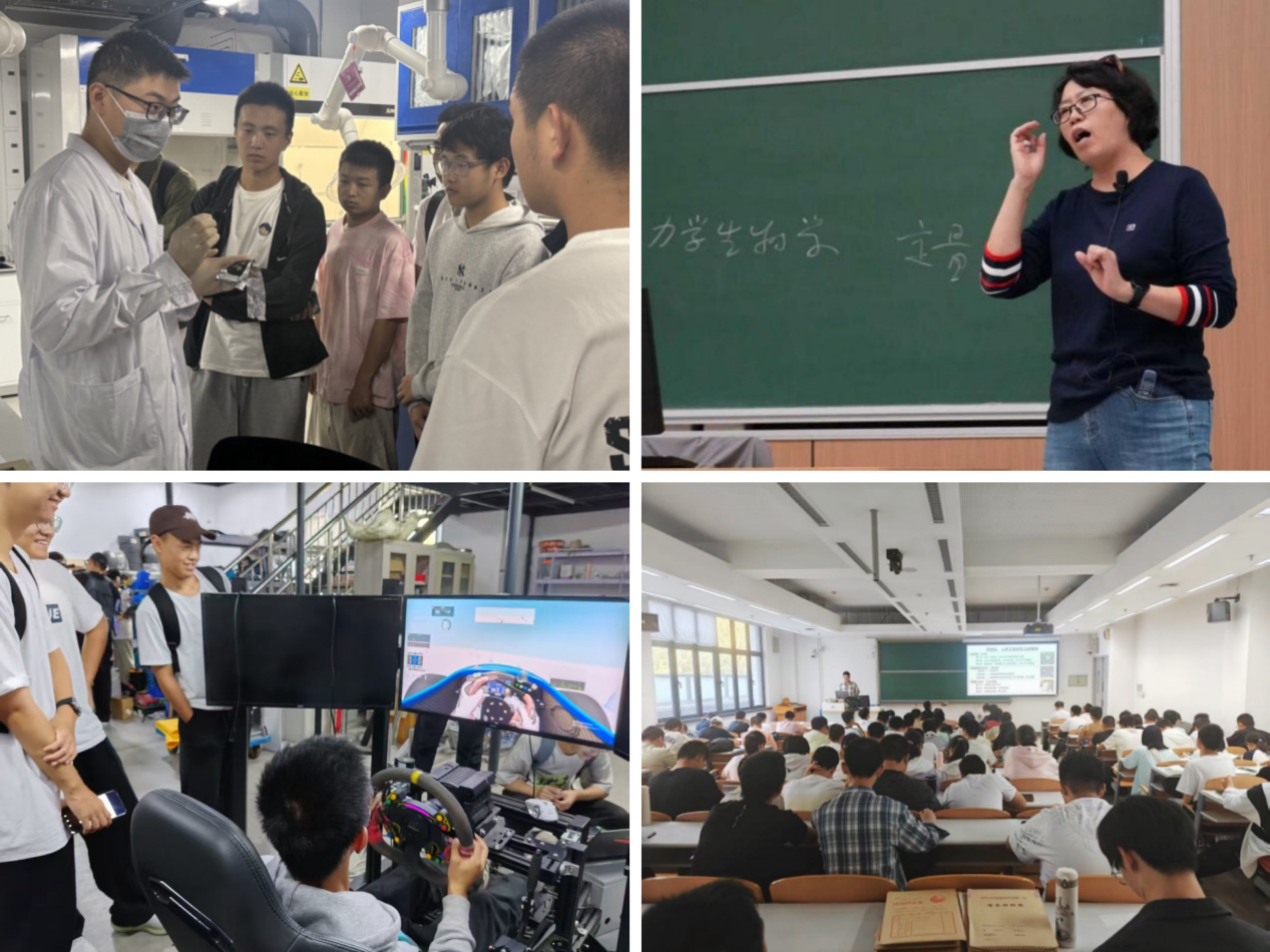 航空航天类的同学们在此次专业行活动中走访各学院实验室并聆听专题讲座,亲身体验航空航天的魅力。材料科学与工程学院赵新青老师以记忆金属产生记忆效应的机制及其具体应用为实例对学院研究内容进行讲解,随后的实验室参观将抽象的理论与前沿的科研实践紧密结合,使同学们对材料学科的前沿发展现状有了深刻的理解。能源与动力工程学院副院长额日其太老师从培养目标、培养方案、学院优势、研究方向等多个角度系统介绍了能源与动力工程学院飞行器动力工程、能源与动力工程、空天智能电推进技术专业的具体情况。航空科学与工程学院郭昊老师系统介绍了学院整体情况,围绕创建历史与发展历程展开阐述,全面展示了学院在学科方向、重大贡献、人才培养等方面的优势,帮助同学们直观领略学院鲜明的学科特色。机械工程及自动化学院王巍老师从硬件、软件角度详细介绍了机器人的组成结构及功能特点,并深入剖析了机器人系统技术体系的核心,引导同学们思考理解机器人技术的系统性特点,为未来的学习和研究奠定坚实基础。生物与医学工程学院孙联文老师带来《北航生物医学工程》主题报告,展示了北航生物医学工程专业从零起步,历经萌芽阶段,最终跃升至全国领先并荣获A+学科认证的辉煌历程,激励同学们积极投身生医领域,共同探索。交通科学与工程学院崔志勇老师做《空地一体 智慧交通》主题报告,详细介绍了交通学院各专业的特点特色和学科优势,随后的实验室参观使同学们更加具体感受到了交通学院的专业特点。可靠性与系统工程学院李晓阳老师、陈世舜博士以“可靠的内涵”为切入点,循序渐进地揭示了可靠性系统工程的理论内涵与应用价值。通过多样的航空航天实例展示,使同学们切实感受到可靠性研究的前沿探索与现实意义,引导大家从工程、生命、文学、艺术及社会等多维视角理解可靠性的普适性与广阔前景。宇航学院李家军老师从人类飞天探索引入宇航,带领同学们穿越时空长廊,回顾了从万户飞天到神舟巡天的壮阔征程,生动讲述了北航宇航学院如何秉承空天报国精神,为我国航天事业输送了大批领军人才。