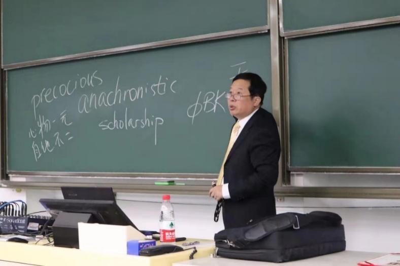 讲座临近尾声,武教授为我们讲述了现代翻译学的时代要求。现代翻译学涉及文学翻译与外交翻译,武教授指出我们的翻译应以直译为主。较之于意译,直译可以更好的表达我国政策、思想核心含义,让外籍人士尽量不在语言上产生误解,更好地了解中国的各种相关政策,助力我国文化的“走出去”战略以及人类命运共同体目标的建设。
