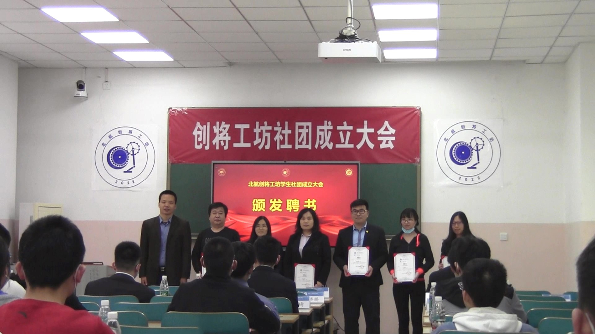 (通讯员 孙治博)2022年4月2日下午,北航“创将工坊”学生社团成立大会在沙河校区工训楼南315召开。“创将工坊”学生社团是依托金沙集团1862cc橙色工程训练中心成立的科技类学生社团,旨在为学生创新实践活动提供支持,服务各类国内、国际大学生科创竞赛,为同学们提供服务与资源。金沙集团1862cc橙色院长兼工程训练中心主任钱政致辞,宣布社团正式成立,随后为社团指导教师颁发聘书,工程训练中心副主任袁媛为社团负责人颁发证书。“创将工坊”学....